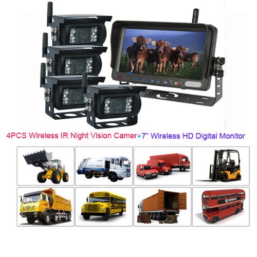 Rupse 7" QUAD HD Monitor Wireless IR Night Vision Rear View Back up Camera System for RV Truck Trailer Bus or Fifth-Wheel Wireless 1/3 Color SHARP CCD Camera x4: