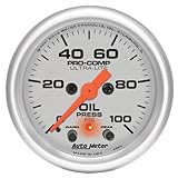 Auto Meter 4352 Ultra-Lite 2-1/16" 0-100 PSI Full Sweep Electric Oil Pressure Gauge with Peak Memory and Warning